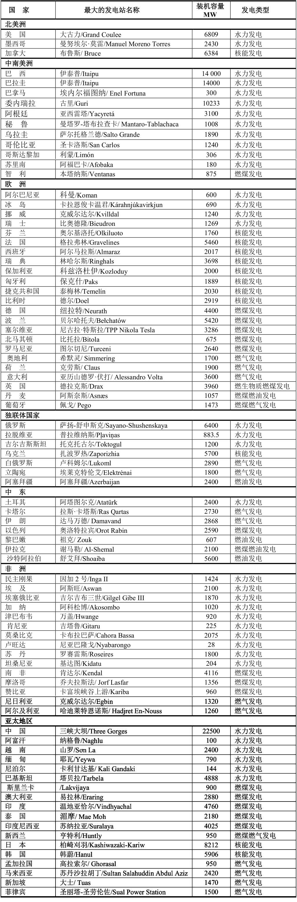 2、 世界各國最大的發(fā)電站