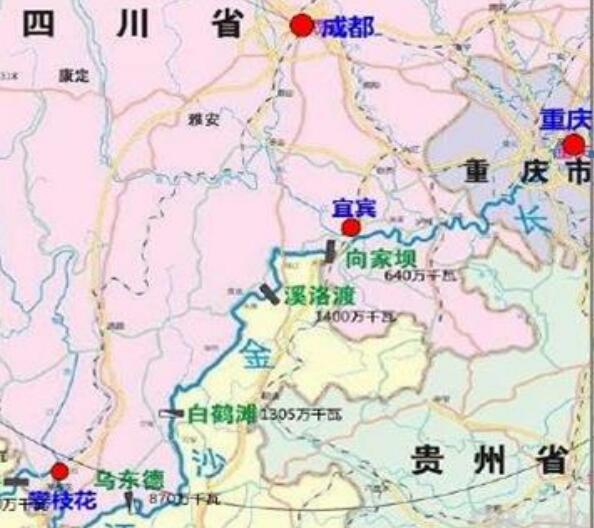 ▲ 四川長江-金沙江段修建了四座世界級的水電站:向家壩、溪洛渡、白鶴灘、烏東德。這四座水電站裝機(jī)總?cè)萘窟_(dá)46508MW,為三峽水電站裝機(jī)容量22500 MW的46508/22500=2.07倍。