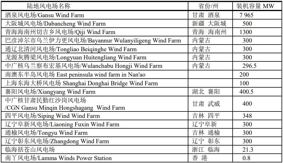 中國大型陸地風電場