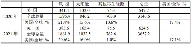 美國(guó)風(fēng)能和光伏發(fā)電(單位:TWh)