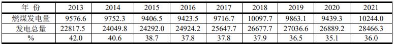燃煤發(fā)電量占全球發(fā)電總量的%在逐年下降