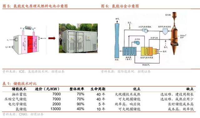 Ø 儲(chǔ)能:可再生能源裝機(jī)快速增長(zhǎng)帶來(lái)消納問題,氫及衍生氣體易實(shí)現(xiàn)大規(guī)模長(zhǎng)周期儲(chǔ)能,存儲(chǔ)特性與電化學(xué)儲(chǔ)能互補(bǔ),是重要的消納手段。