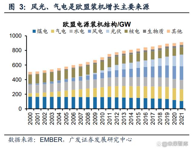 從裝機(jī)變化趨勢(shì)來看:歐盟煤電機(jī)組陸續(xù)關(guān)停,風(fēng)光、氣電是裝機(jī)增長(zhǎng)主要來源。
