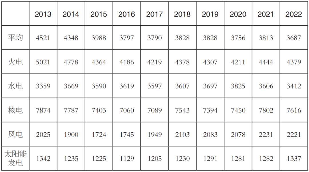 表5 2013—2022年發(fā)電設(shè)備利用小時數(shù)(單位:小時)