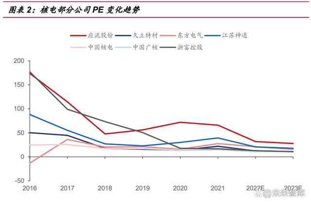 人和:目前核電板塊各公司基金持倉仍處于底部,公司估值也處于歷史低點。 我們選取核電板塊部分公司觀察基金持倉比例,發(fā)現(xiàn)經(jīng)過 2019 年之后的集 體上升后,2021 年至今呈現(xiàn)下降趨勢,當前處于歷史低點。從核電板塊公 司估值角度,近年來一直處于緩慢下降狀態(tài),目前正處于歷史低點。我們認 為在上述“天時地利人和”因素加持下,核電板塊有較大向上空間。