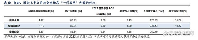 《方案》也要求深化解決部分中央企業(yè)內(nèi)部上市平臺定位不清、分布散亂、實(shí)力較弱的具體問題,并提出了相應(yīng)的量化要求。而《方案》的改革重點(diǎn)由全部國企轉(zhuǎn)變?yōu)檠肫蠊荆覀?認(rèn)為這是基于央企控股上市公司的屬性。相對于國企上市公司,央企控股的背景意味著公司 的實(shí)際控制人為國資委,易于統(tǒng)一管理和直接考核,由此進(jìn)行下一步改革的力度深度或?qū)⒏?強(qiáng)。在引入積極股東環(huán)節(jié),完善企業(yè)治理結(jié)構(gòu),進(jìn)行企業(yè)制度創(chuàng)新等方面成效或更顯著。 近年來,為推動中央企業(yè)加快實(shí)現(xiàn)高質(zhì)量發(fā)展,國資委探索建立了中央企業(yè)經(jīng)營指標(biāo)體系。 2020 年,首次形成“兩利三率”指標(biāo)體系,包括凈利潤、利潤總額、營業(yè)收入利潤率、資產(chǎn)負(fù) 債率和研發(fā)經(jīng)費(fèi)投入強(qiáng)度。2021 年,為引導(dǎo)中央企業(yè)提高生產(chǎn)效率,增加了全員勞動生產(chǎn) 率指標(biāo),完善為“兩利四率”。2022 年,針對“兩利四率”指標(biāo),進(jìn)一步提出“兩增(利潤總額和 凈利潤增速高于國民經(jīng)濟(jì)增速)一控(控制好資產(chǎn)負(fù)債率)三提高(營業(yè)收入利潤率、全員 勞動生產(chǎn)率、研發(fā)經(jīng)費(fèi)投入進(jìn)一步提高)”的總體要求。2023 年的中央企業(yè)負(fù)責(zé)人會議上, 國資委在總結(jié)近幾年工作成效基礎(chǔ)上,對中央企業(yè)經(jīng)營指標(biāo)體系進(jìn)行了優(yōu)化調(diào)整,將“兩利 四率”調(diào)整為“一利五率”。 “一增”即確保利潤總額增速高于全國 GDP 增速;“一穩(wěn)”即企 業(yè)資產(chǎn)負(fù)債率總體保持穩(wěn)定;“四提升”即凈資產(chǎn)收益率、研發(fā)經(jīng)費(fèi)投入強(qiáng)度、全員勞動生產(chǎn)率、營業(yè)現(xiàn)金比率 4個(gè)指標(biāo)進(jìn)一步提升。