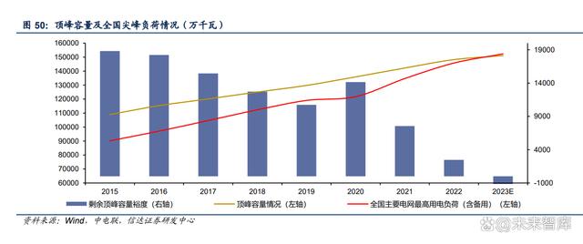 頂峰裝機(jī)容量裕度或?qū)⑹锥染o缺,電力供需矛盾年內(nèi)或?qū)⒃俣燃せ?023 年可投產(chǎn)火電裝 機(jī)為 2021 年左右開工建設(shè)項(xiàng)目,我們預(yù)計(jì)投產(chǎn)規(guī)模約為 4000 萬千瓦;水電核電可投產(chǎn)裝 機(jī)為“十三五”中期開工建設(shè)項(xiàng)目,預(yù)計(jì)合計(jì)投產(chǎn)規(guī)模為 1000萬千瓦。據(jù)我們計(jì)算,2023年 內(nèi)頂峰容量約為 15.1 億千瓦,將首度少于全國用電尖峰負(fù)荷(含備用)。2023 年 1 月 19 日,中電聯(lián)發(fā)布《2023 年度全國電力供需形勢分析預(yù)測報(bào)告》,預(yù)計(jì) 2023 年全國電力供需總體緊平衡,部分區(qū)域用電高峰時(shí)段電力供需偏緊。迎峰度夏期間,華東、華中、南方區(qū) 域電力供需形勢偏緊;華北、東北、西北區(qū)域電力供需基本平衡。迎峰度冬期間,華東、 華中、南方、西北區(qū)域電力供需偏緊;華北區(qū)域電力供需緊平衡;東北區(qū)域電力供需基本 平衡。