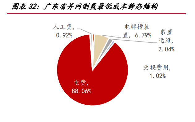 電氫分為電網(wǎng)電解水制氫(并網(wǎng)制氫)和風(fēng)光一體化電解水制氫(離網(wǎng)制氫)。 并網(wǎng)制氫是將系統(tǒng)接入電網(wǎng)取電,主要應(yīng)用于大規(guī)模制氫消納新能源發(fā)電,制氫成本 主要為電費。離網(wǎng)制氫則是將風(fēng)光發(fā)電機組產(chǎn)生的電能,不經(jīng)過電網(wǎng)直接提供給電解 水制氫設(shè)備,制氫成本主要為電源建設(shè)成本。 目前國內(nèi)電氫系統(tǒng)以并網(wǎng)制氫為主,電網(wǎng)作為穩(wěn)定能源支撐制氫系統(tǒng)負荷波動較 小,同時相關(guān)設(shè)備更成熟。但在并網(wǎng)制氫的情況下,由于系統(tǒng)內(nèi)電能需要經(jīng)過升價、 降壓、整流多次變換,導(dǎo)致?lián)p耗較大,同時承擔(dān)電網(wǎng)輸配電及政府基金及附加等成本。