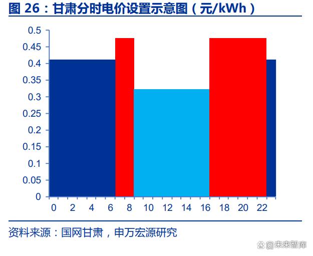 我國各省峰谷電價設置主要有四種模式: (1)谷時段處于白天,可進行一次峰谷和一次峰平套利:以新能源比例較高的西北 部分省份,如寧夏、甘肅、青海等地為代表,通常整個白天均為谷時段,早上和晚上為峰 時段。這些地區(qū)可以設置兩充兩放策略,但僅能進行一次峰—谷和一次峰—平套利,且由于本地電價水平較低,價差不明顯。以甘肅 110kV 兩部制電價為例,峰-谷價差僅為 0.15 元/kWh,峰-平價差 0.063 元/kWh,經(jīng)濟性較差。 (2)中午和凌晨均設置谷時段,可進行兩次峰谷套利:以浙江、新疆、山西等省份 為代表,通常在午間和凌晨設置低谷時段,早上和下午(或晚間)設置高峰或尖峰時段, 這樣可以享受兩次峰-谷套利,是最適合工商業(yè)峰谷套利的地區(qū)。浙江省 110kV 兩部制電 價兩次峰—谷平均價差為 0.7 元/kWh,如果兩次尖峰—谷套利,價差則為 0.9 元/kWh, 完全具備投資價值。 (3)凌晨為谷時段,中午為平段,可進行一次峰谷和一次峰平套利:其余大多數(shù)省 份,通常凌晨為谷時段,午間為平時段,這些省份只能進行一次峰—谷和一次峰—平套利, 但由于部分發(fā)達省份電價水平較高且電價水平差距較大,仍有可能具備峰谷套利經(jīng)濟性。 如廣東省 110kV 兩部制用戶平均價差 0.68 元/kWh,7—9 月實行尖峰電價時平均價差 0.97 元/kWh,年平均價差達到 0.75 元/kWh。 (4)僅中午設置谷時段,僅能進行一次峰谷套利:代表省份是山東省,雖然中午設 置為低谷甚至深谷,但由于高峰期緊貼深谷,僅能進行一次峰谷套利,經(jīng)濟性不突出。