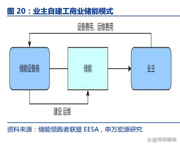 工商業(yè)儲能運營模式主要分為自建和合同能源管理模式。1)業(yè)主自建:工商業(yè)用戶 自行安裝儲能。用戶自行承擔初始投資成本及每年設備維護成本;2)合同能源管理(市 面較常見):能源服務企業(yè)協(xié)助用戶安裝儲能,能源企業(yè)投資建設儲能資產(chǎn)并負責后期運 維,能源服務企業(yè)與用電企業(yè)分享儲能收益,目前一般按照 90%:10%或 85%:15%等比例。 此模式對業(yè)主方而言僅需提供場地,按服務效果付費,但對投資方而言存在資金壓力、收 益波動和安全運行的風險,具備一定資金及產(chǎn)品服務壁壘,因此能源服務方一般以對儲能 建設和運營經(jīng)驗較多的綜合能源公司、能源集團、儲能設備商為主。