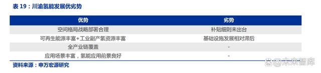 當(dāng)前,氫能尚處于商業(yè)導(dǎo)入期,氫能產(chǎn)業(yè)的發(fā)展有三個(gè)環(huán)節(jié)——上游制儲運(yùn)、中游燃料電池核心零部件、下游應(yīng)用端,各重點(diǎn)城市群在氫能建設(shè)的道路上尚在突破阻礙,蓄力布局中。川渝地區(qū)在地理位置、氫能資源、產(chǎn)業(yè)鏈體系建設(shè)等方面優(yōu)勢巨大,申報(bào)此次示范城市群成功可能性極大。川渝地理位置優(yōu)越,空間格局戰(zhàn)略部署合理,形成“一軸、一港、一區(qū)、三路”的“1113”發(fā)展格局。并且,川渝地區(qū)可再生能源豐富,擁有得天獨(dú)厚的發(fā)展優(yōu)勢,同時(shí),在成都市,煤化工廠分布密集,副產(chǎn)氫資源頗豐,導(dǎo)致上游制氫成本低。除此之外,川渝氫能產(chǎn)業(yè)制造實(shí)力強(qiáng),現(xiàn)已掌握氫燃料電池、氫源制備、加氫儲氫裝備等領(lǐng)域核心技術(shù),聚集產(chǎn)業(yè)鏈企業(yè)及科研院所200余家,成為了國內(nèi)氫能產(chǎn)業(yè)鏈基礎(chǔ)較為完整的地區(qū)之一。在應(yīng)用端,川渝地區(qū)應(yīng)用氫能應(yīng)用前景良好,截止到2021年底,成渝地區(qū)實(shí)現(xiàn)了440輛的燃料電池汽車的產(chǎn)業(yè)化示范應(yīng)用,配套建成了15座加氫站。