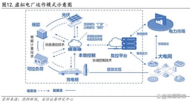 未來隨著電力市場成熟,工商業(yè)儲能也可以通過虛擬電廠以聚合的方式參與電力市場交易。虛擬電廠是應用先進的通訊和控制技術(shù),實現(xiàn)對大量散布的分布式資源的聚合調(diào)控,使這些分布式資源規(guī)?;⒕邆鋮⑴c電力系統(tǒng)運行調(diào)度的資格和能力。“虛擬”的含義是這些資源并非真正的發(fā)電廠,而是對分布式資源的聚合,“電廠”的含義是能夠像真正的發(fā)電廠一樣為電力系統(tǒng)提供電能量和輔助服務。
