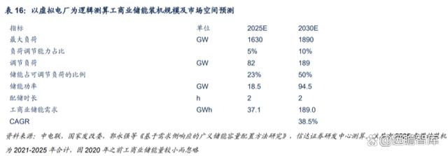 虛擬電廠帶來(lái)工商業(yè)儲(chǔ)能遠(yuǎn)期需求超預(yù)期的可能。基于分布式光伏的裝機(jī)并估計(jì)儲(chǔ)能的滲透率,由于目 前量較小,滲透率較低,且工商業(yè)企業(yè)眾多,變化較大。能夠認(rèn)為工商業(yè)儲(chǔ)能提供給用戶(hù)側(cè)充足的靈活 性資源,奠定虛擬電廠的發(fā)展基礎(chǔ),而虛擬電廠的建設(shè)增添未來(lái)收益增長(zhǎng)的預(yù)期,或?qū)⒏淖児ど虡I(yè)儲(chǔ)能 的投資屬性,進(jìn)而促進(jìn)工商業(yè)儲(chǔ)能的發(fā)展,打開(kāi)工商業(yè)儲(chǔ)能的遠(yuǎn)期空間。這或?qū)?lái)下游企業(yè)的觀念的改變、儲(chǔ)能的剛需屬性凸顯,進(jìn)而有望帶動(dòng)儲(chǔ)能滲透率的快速提升。預(yù)計(jì)在虛擬電廠建設(shè)順利的情況下, 工商業(yè)儲(chǔ)能 2025、2030 累計(jì)裝機(jī)有望達(dá) 37GWh、189GWh。