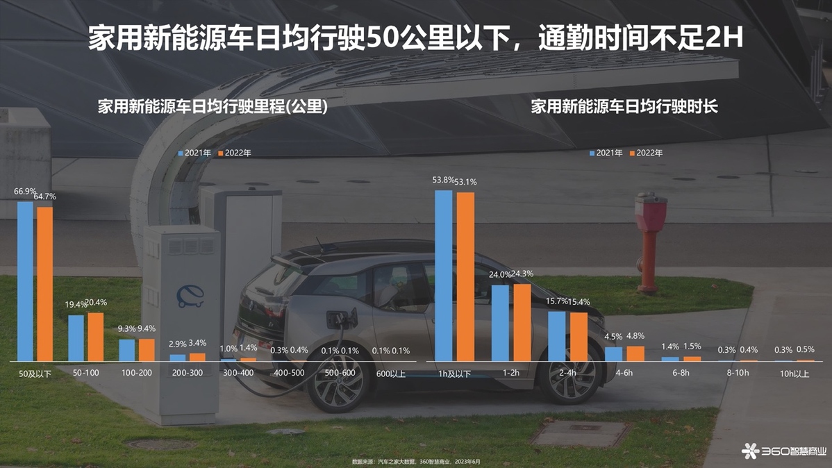 而從“家用電動(dòng)汽車日均行駛50KM以下,通勤時(shí)間不足2H”我們也不難看出,家用新能源汽車在下沉市場(chǎng)的比例正在增加——高頻但低容量的通勤距離和時(shí)長(zhǎng)以及低用車成本讓新能源汽車成為“小鎮(zhèn)青年”日常通勤、出行的好選擇。
