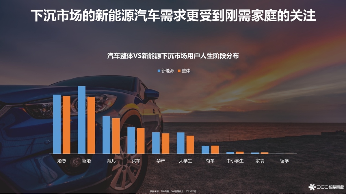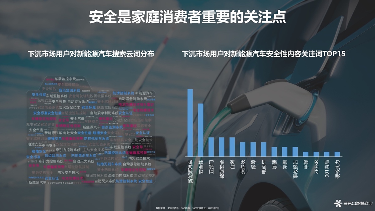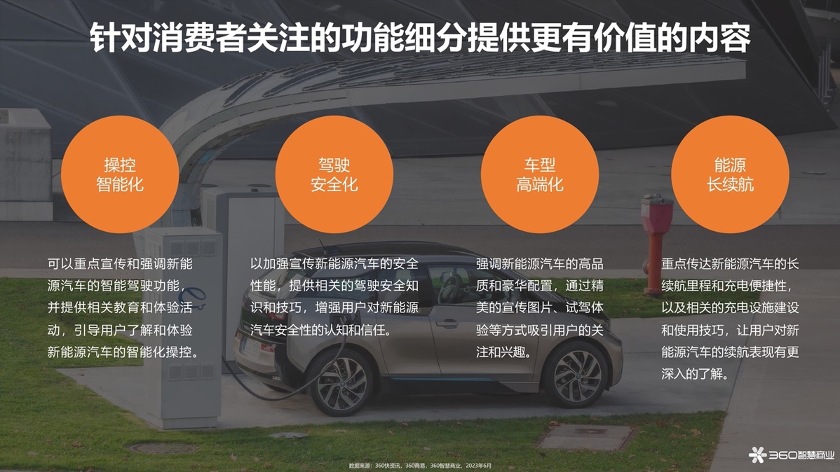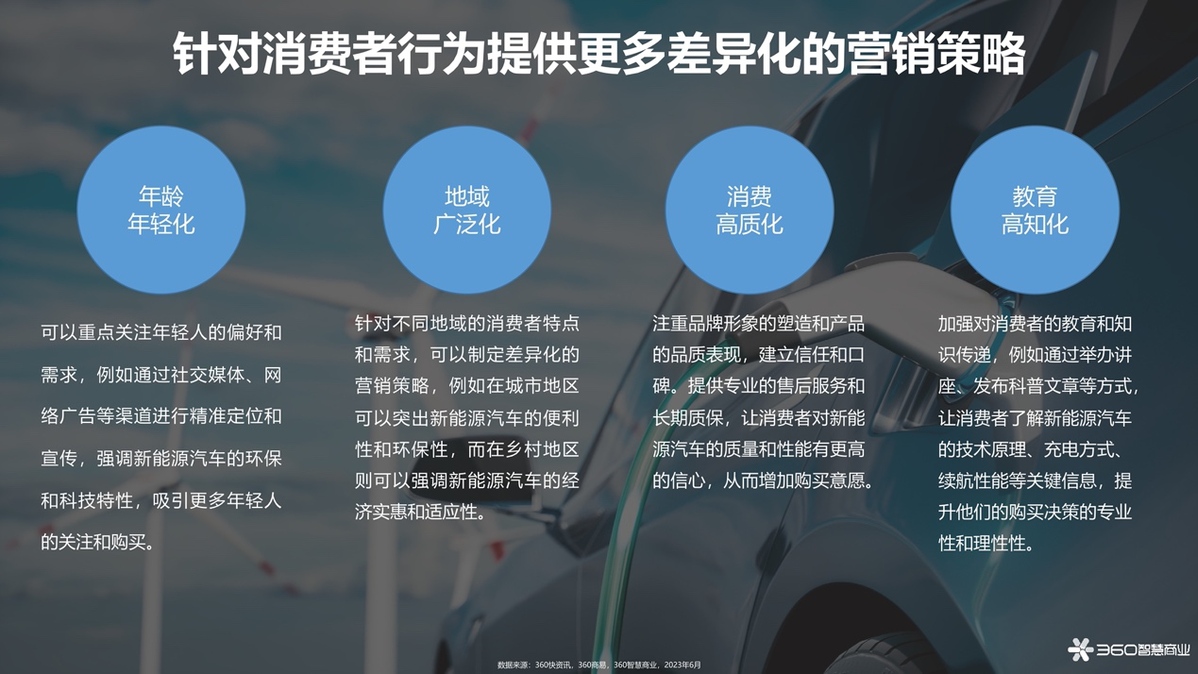 近日,油價(jià)迎來新一輪上調(diào),新能源汽車低成本用車的優(yōu)勢(shì)得以凸顯,而隨著7月31日發(fā)改委發(fā)布的《關(guān)于恢復(fù)和擴(kuò)大消費(fèi)的措施》明確提出“擴(kuò)大新能源汽車消費(fèi)”、支持新能源汽車下鄉(xiāng)等舉措,新能源汽車大眾化趨勢(shì)也更加顯著。隨著市場(chǎng)環(huán)境修復(fù)和重振,卯足馬力行至2023年下半場(chǎng),新能源汽車行業(yè)展現(xiàn)出哪些增長(zhǎng)新姿態(tài)?近日,360智慧商業(yè)聯(lián)合360汽車頻道發(fā)布了《2023年新能源汽車行業(yè)洞察》報(bào)告(以下簡(jiǎn)稱“報(bào)告”),針對(duì)新能源汽車行業(yè)發(fā)展趨勢(shì)、消費(fèi)者行為等維度進(jìn)行深入洞察。