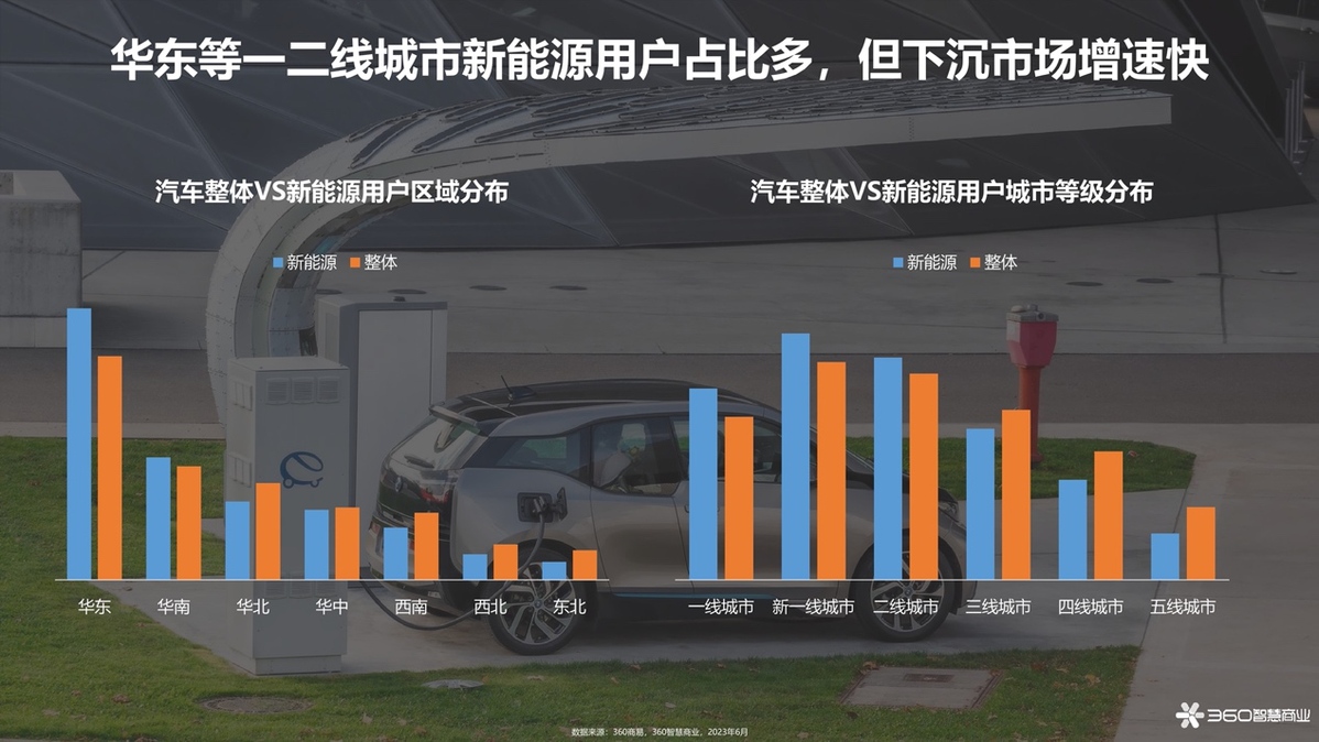 進(jìn)入2023年,新能源汽車更是進(jìn)入全面迅猛發(fā)展的階段,銷量穩(wěn)步持續(xù)提升。在地域分布上,華東、華南等氣候較溫暖地區(qū)新能源汽車用戶占比最高,而極易遭遇嚴(yán)寒天氣的西北、東北地區(qū),用戶占比最少,展示出顯著的地域分布特點(diǎn)。而在城市等級(jí)分布中,報(bào)告顯示,三、四、五線城市中,新能源汽車和汽車整體的用戶數(shù)量差距正在縮小,更多消費(fèi)者對(duì)新能源汽車的態(tài)度已由謹(jǐn)慎觀望轉(zhuǎn)變?yōu)橹鲃?dòng)擁抱。