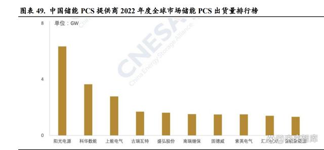 當(dāng)前儲(chǔ)能 PCS 生產(chǎn)廠商眾多,與光伏逆變器廠商高度重合。儲(chǔ)能變流器與光伏逆變器的最主要 作用都是實(shí)現(xiàn)交直流的轉(zhuǎn)換,所以兩種產(chǎn)品的主要零部件類似,且在應(yīng)用端也開始呈現(xiàn)高度的協(xié) 同效應(yīng)。在光伏 PCS 已經(jīng)取得非常大的市場(chǎng)規(guī)模的前提下,未來(lái)儲(chǔ)能 PCS 的競(jìng)爭(zhēng)格局與光伏逆 變器趨同,延續(xù)光伏 PCS 格局。當(dāng)前儲(chǔ)能 PCS 行業(yè)賽道參與者眾多,來(lái)自光伏逆變器、不間斷 電源(UPS)、充電樁(EV charger)、電網(wǎng)側(cè)-輸配電設(shè)備(PTD、MVD、APF、SVG)等多領(lǐng) 域廠商。據(jù) CNESA 數(shù)據(jù),2022 年度全球市場(chǎng)中儲(chǔ)能 PCS 出貨量排名前十位的中國(guó)儲(chǔ)能 PCS 提 供商,依次為陽(yáng)光電源、科華數(shù)能、上能電氣、古瑞瓦特、盛弘股份、南瑞繼保、固德威、索英 電氣、匯川技術(shù)和首航新能源。