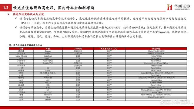 快充主流路線(xiàn)為高電壓,國(guó)內(nèi)外車(chē)企積極布局