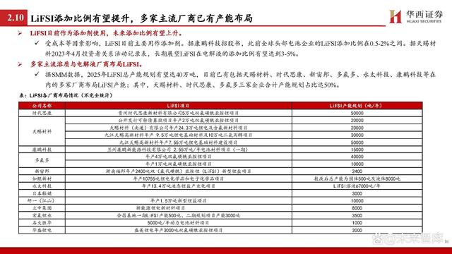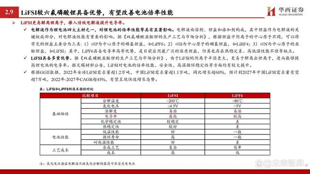 鋰離子傳輸是影響快充核心,重點(diǎn)聚焦負(fù)極和電解液等材料。據(jù) 《鋰離子電池快速充電研究進(jìn)展》: 鋰電池也被稱(chēng)為“搖椅”式電池,鋰離子傳輸是影響充電 過(guò)程的重要因素。在充電過(guò)程中,鋰離子的路徑大致為: 從正極材料中脫出,通過(guò)正極/電解質(zhì)界面(CEI)進(jìn)入電 解液,并以溶劑化的形式移動(dòng)至負(fù)極,在去溶劑化后穿過(guò) 負(fù)極表面的固體/電解質(zhì)界面(SEI)嵌入負(fù)極層狀結(jié)構(gòu)中并 與電子結(jié)合。 對(duì)于電極材料而言,材料內(nèi)部離子傳輸通道及材料顆粒的 形態(tài)、形狀和取向等是影響鋰離子的擴(kuò)散的重要因素,其 中負(fù)極相較正極受影響更大。對(duì)于電解液而言,由于傳統(tǒng) 的電解液在氧化還原穩(wěn)定性上具備劣勢(shì),快充會(huì)使其不斷 分解并形成EEI層,導(dǎo)致鋰離子呈現(xiàn)較慢的傳輸動(dòng)力學(xué);同 時(shí),傳統(tǒng)電解液的溶劑化結(jié)構(gòu)去溶劑化勢(shì)壘較高,對(duì)鋰離 子的擴(kuò)散形成阻礙。 因此,如何顯著提升鋰離子在負(fù)極、電解液等材料中的擴(kuò) 散動(dòng)力學(xué)成為當(dāng)下研究的重點(diǎn)。