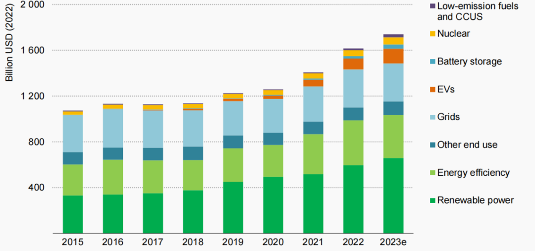 圖2 2015—2023年全球清潔能源投資情況 (來源:IEA)