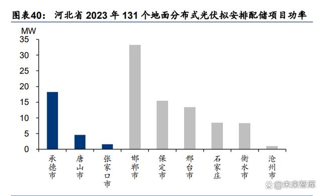 河北案例:以河北省發(fā)改委公示的河北省 2023 年地面分布式光伏擬安排項目來看,共計 302 個 項 目 ,總 規(guī)模 1.43GW ,其中 131 個 項目 承諾 按要 求配 置儲 能,總規(guī)模 104MW/204MWh。需要注意的是,131個承諾按要求配儲的地面分布式光伏項目,均位于 無開放容量區(qū),而在可開放容量范圍內(nèi)的 171個項目均無需承諾配置儲能。