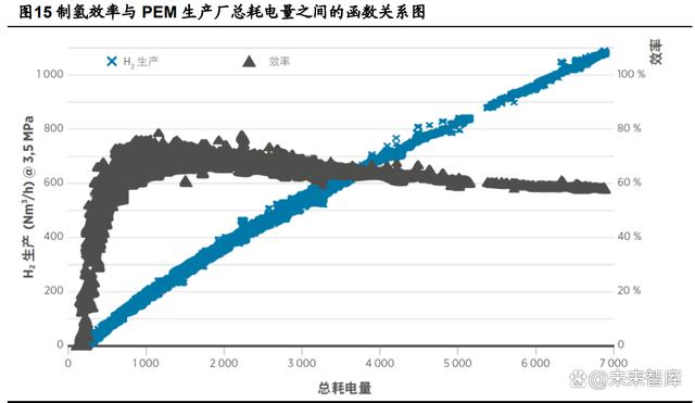 ALK 電解槽技術(shù)相對(duì)較為成熟,主要用于化工等非能源方面,而 PEM 電解槽的寬 廣工作范圍和更短的響應(yīng)時(shí)間使得其在為電網(wǎng)提供輔助性服務(wù)方面具備相對(duì)優(yōu)勢(shì)。ALK 電解槽技術(shù)已經(jīng)完全成熟,自 20 世紀(jì) 20 年代以來(lái)已經(jīng)在工業(yè)中使用,主要用于非能源 相關(guān)的應(yīng)用,特別是如氯氣制造等化學(xué)工業(yè)。目前 ALK 電解槽的使用壽命已經(jīng)提高一倍, 可以達(dá)到 10-20 年。與現(xiàn)有的 ALK 技術(shù)相比,領(lǐng)先的 PEM 電解裝臵在運(yùn)行中的靈活性 和反應(yīng)性更高。這種顯著提高的運(yùn)營(yíng)靈活性可以讓它從多個(gè)電力市場(chǎng)獲得收益,因?yàn)?PEM 技術(shù)提供更寬廣的工作范圍并且響應(yīng)時(shí)間更短。 PEM 電解槽動(dòng)態(tài)響應(yīng)能力強(qiáng),低負(fù)載下運(yùn)行效率較高,增加的靈活性可能會(huì)提高 電力制氫的整體經(jīng)濟(jì)效益。質(zhì)子交換膜(PEM)電解水技術(shù)在電壓多變的運(yùn)行條件下, 表現(xiàn)出更好的靈活性,更快的響應(yīng)性和 0-100%負(fù)荷范圍內(nèi)的穩(wěn)定性,甚至可以短時(shí)間 高于額定負(fù)荷工作。堿性電解水技術(shù)從基礎(chǔ)機(jī)理層面來(lái)說(shuō)不如質(zhì)子交換膜(PEM)電解 水技術(shù)靈活。憑借向上和向下調(diào)節(jié)功能,PEM 電解槽可在不折損其可用生產(chǎn)能力的情況 下,提供高價(jià)值頻率控制備用容量(FCR),只要有足夠的氫存儲(chǔ)量,就可以在為其客 戶提供氫氣(用于工業(yè)、交通應(yīng)用或天然氣管網(wǎng)的注入)的同時(shí),以較低的額外 CAPEX 和OPEX為電網(wǎng)提供輔助性服務(wù)。這種增加靈活性可能會(huì)提高電力制氫的整體經(jīng)濟(jì)效益, 從而可以從多個(gè)電力市場(chǎng)形成新的收入來(lái)源,以補(bǔ)償 PEM 相對(duì)于 ALK 電解裝臵而言更 高的資本成本。