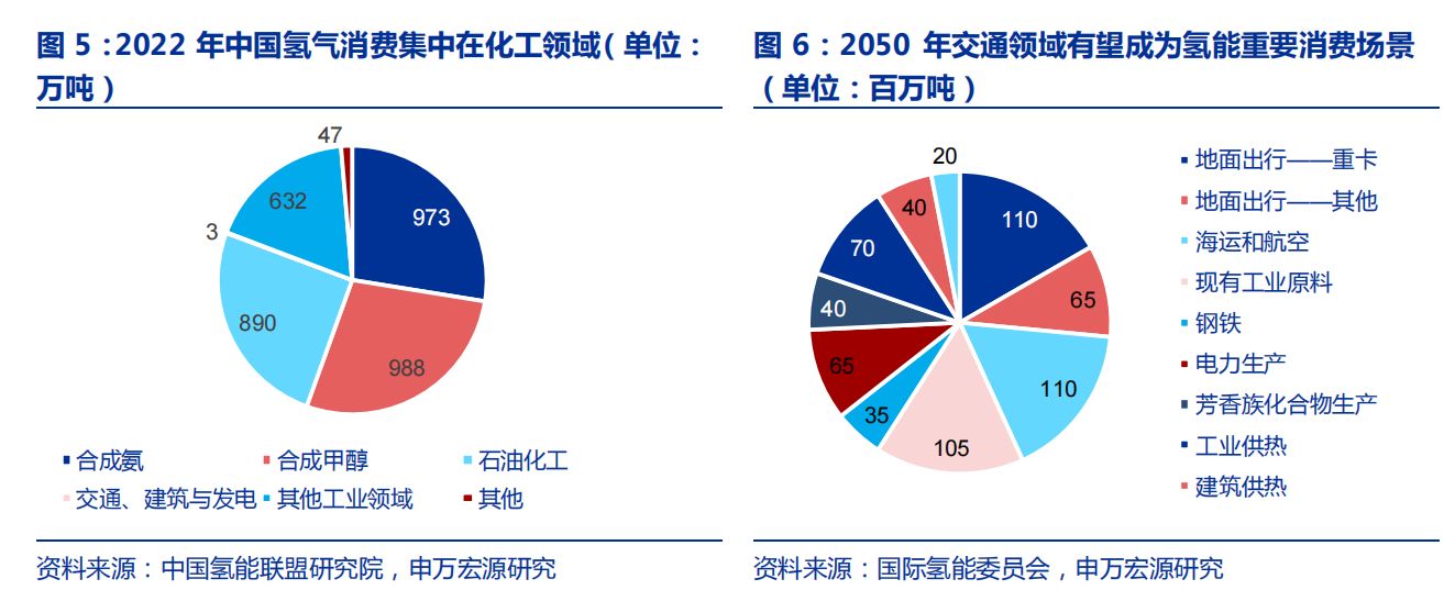 1)氫氣作為清潔能源,在碳中和愿景下需求較大:根據(jù)中國氫能聯(lián)盟研究院,預(yù)計到2050 年全球氫氣需求量將達(dá)到6.6 億噸,其中中國約為1.95 億噸(2022 年僅0.35 億噸)。