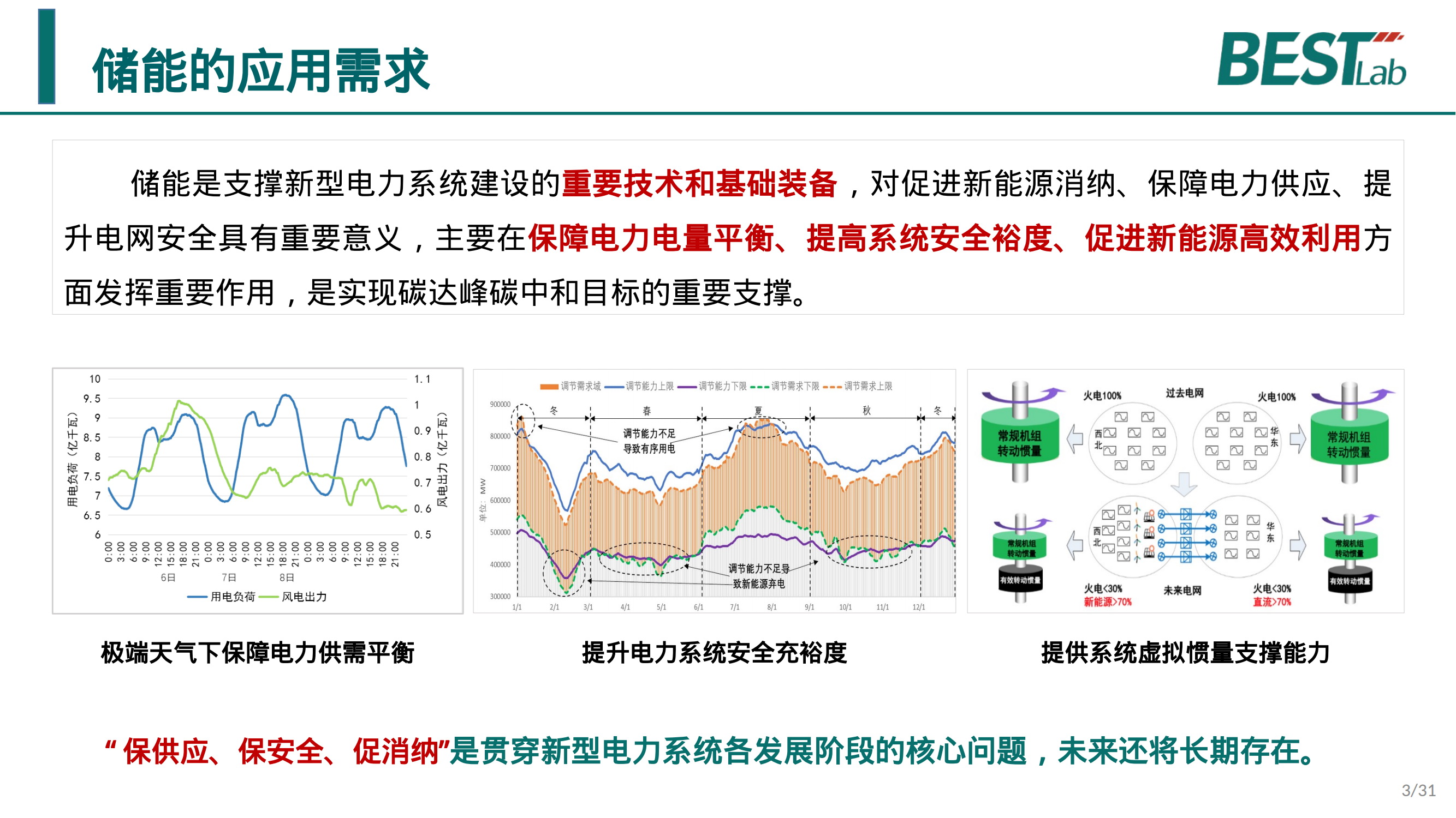 報(bào)告詳細(xì)介紹了儲(chǔ)能的應(yīng)用需求,包括極端天氣下的電力供需平衡、系統(tǒng)安全充裕度提升和虛擬慣量支撐能力。列舉了國(guó)家風(fēng)光儲(chǔ)輸示范工程和江蘇鎮(zhèn)江百兆瓦大規(guī)模電網(wǎng)側(cè)儲(chǔ)能電站等實(shí)際應(yīng)用案例,并預(yù)測(cè)到2030年電化學(xué)儲(chǔ)能裝機(jī)將超1億千瓦。