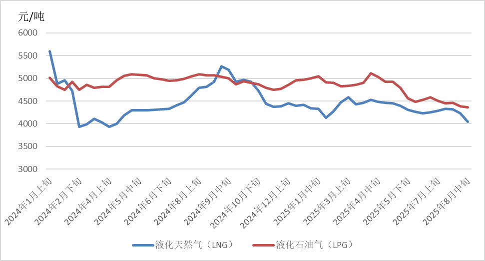 截至8月25日,普氏日韓LNG(JKM)期貨價格收于11.55美元/百萬英熱單位,月環(huán)比下降2.74%,相較2024年同期的13.82美元/百萬英熱單位,下降16.43%。