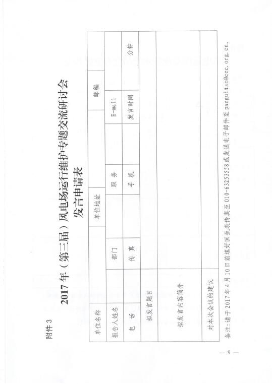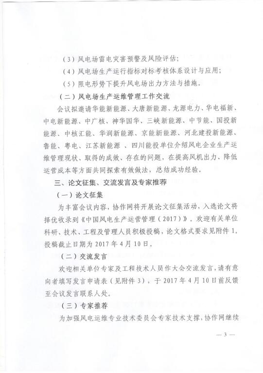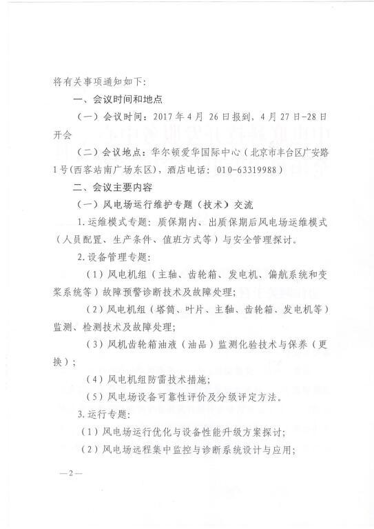 關(guān)于召開2017年(第三屆)風(fēng)電場運(yùn)行維護(hù)專題交流研討會(huì)的通知