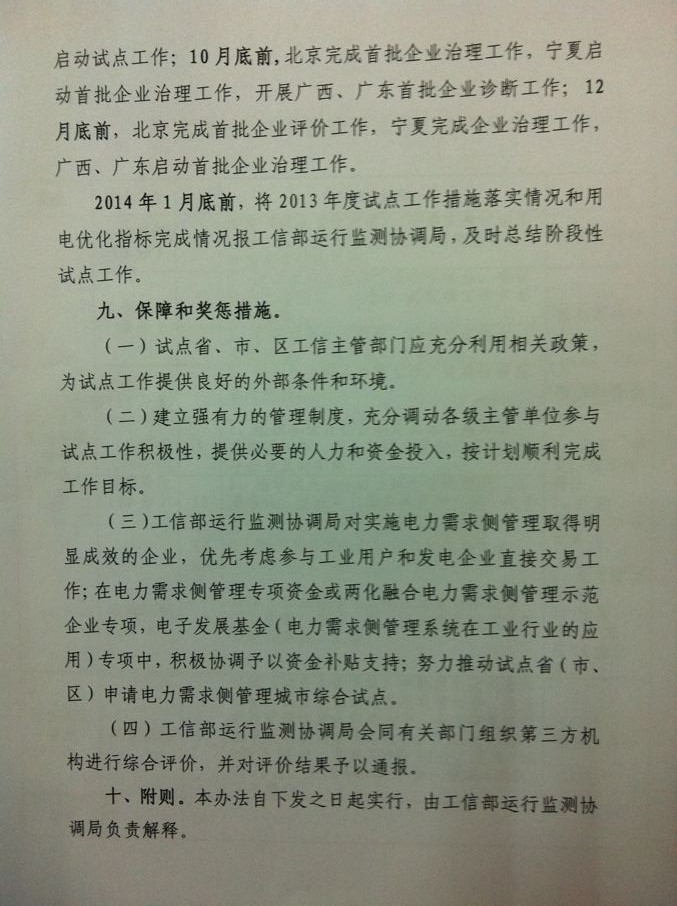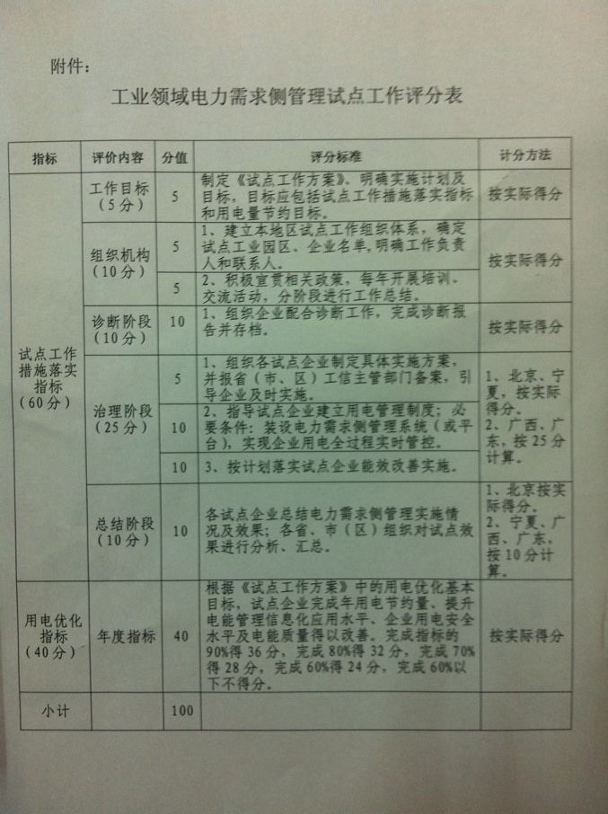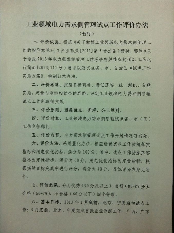 工業(yè)領(lǐng)域電力需求側(cè)管理試點(diǎn)工作評價(jià)辦法(暫行)