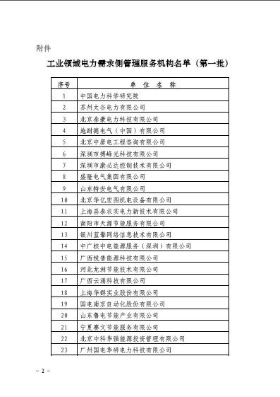 關(guān)于公布全國(guó)工業(yè)領(lǐng)域電力需求側(cè)管理服務(wù)機(jī)構(gòu)名單(第一批)的通知